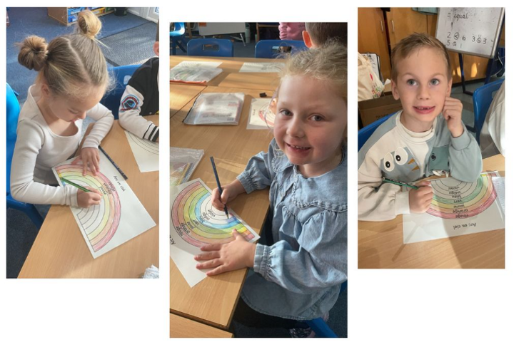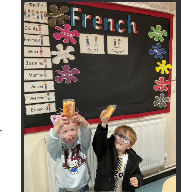In Key Stage 1, children focused on French. They learned words for different colours and used their new vocabulary to create colourful rainbow pictures. To complete the experience, pupils also enjoyed tasting French snacks, adding a flavour of French culture to the classroom.